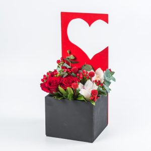 Κουτί καρδιά με κόκκινα τριαντάφυλλα και ορχιδέα